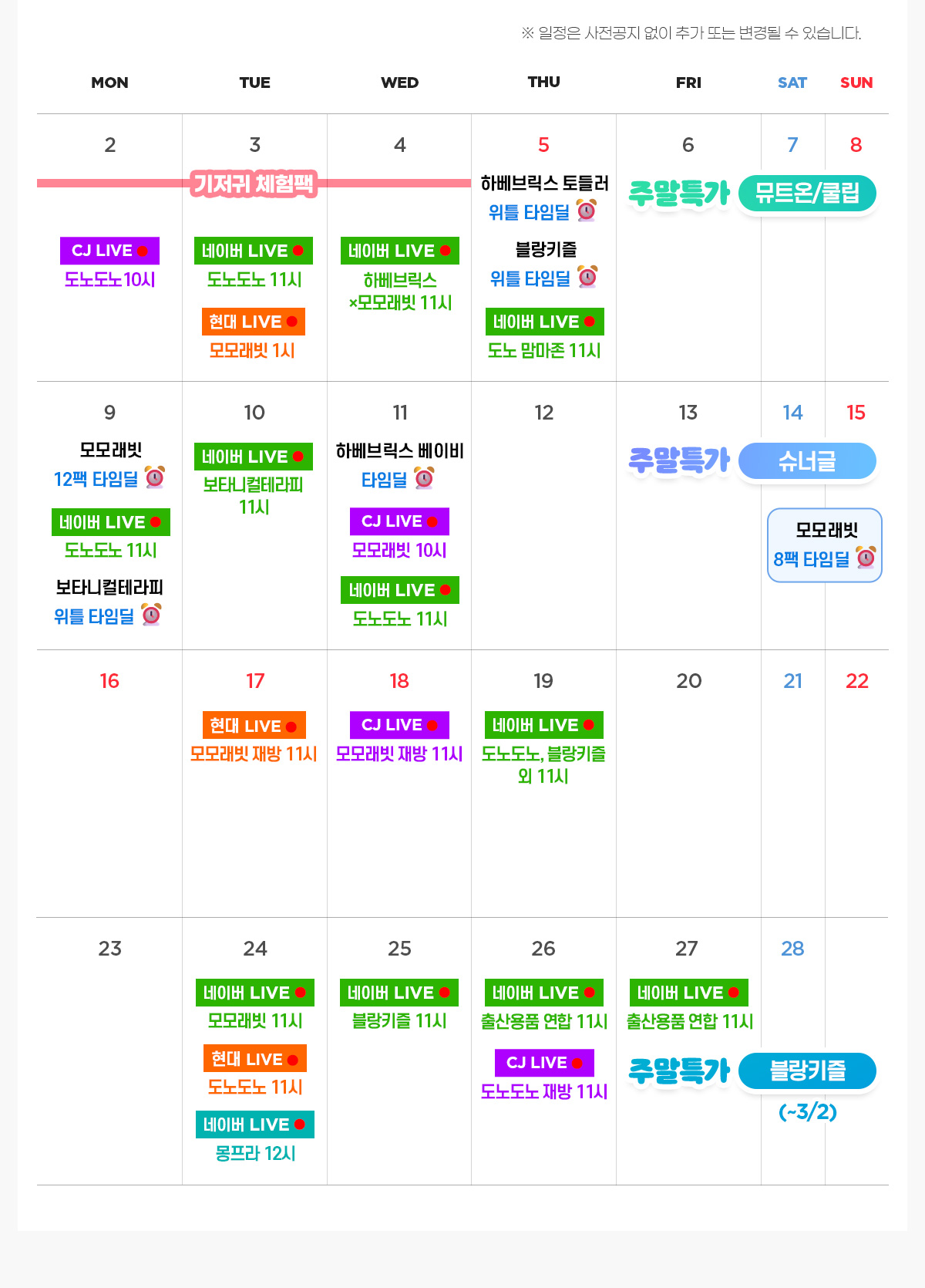 2026년 2월 행사달력