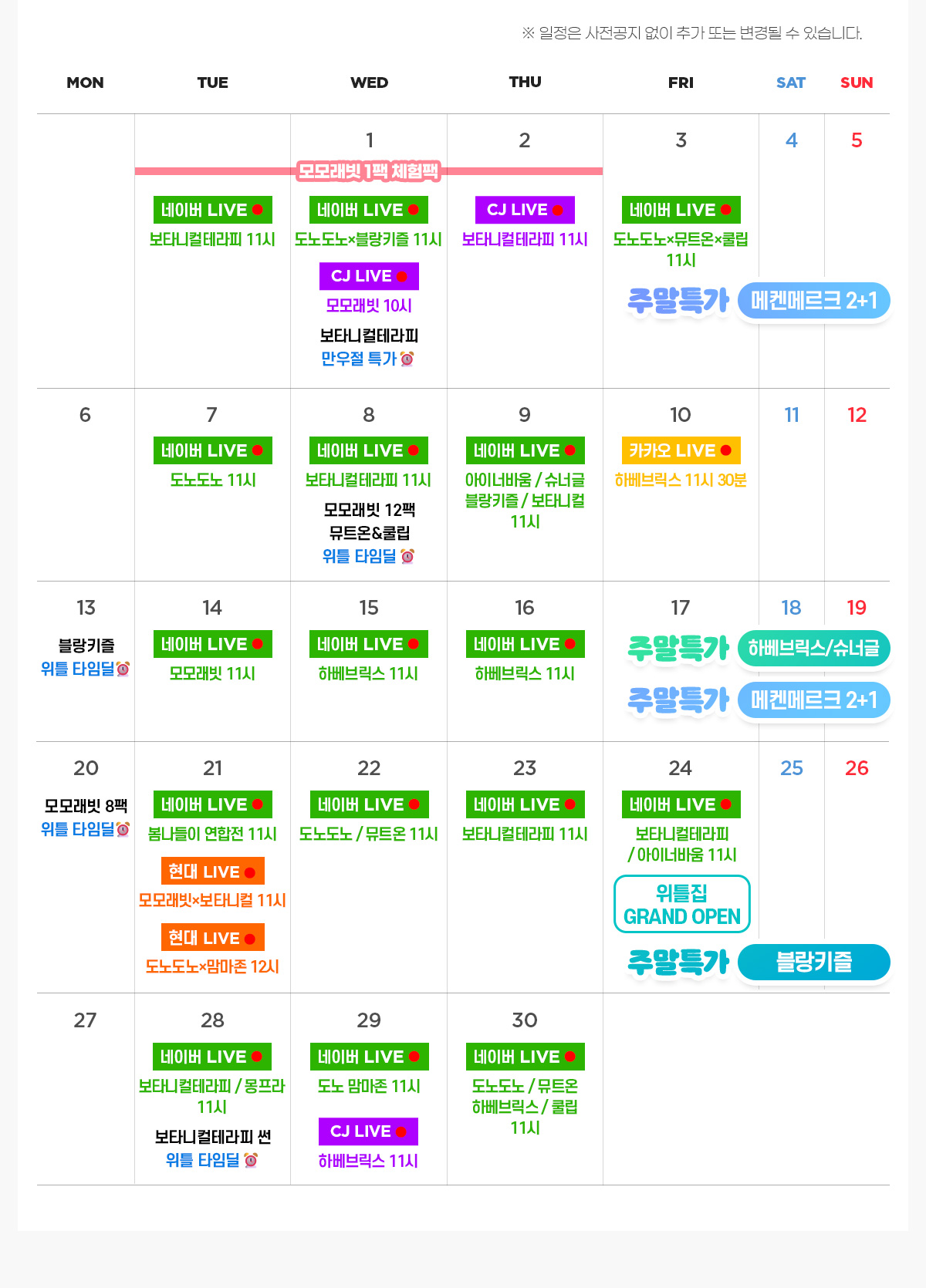 2026년 4월 행사달력
