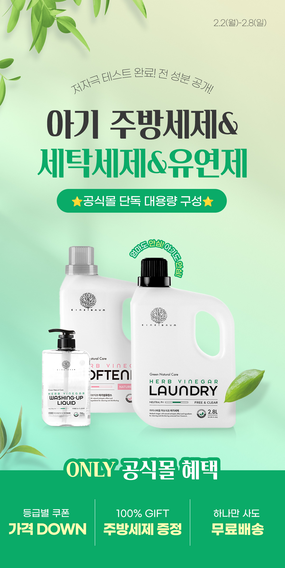 허브식초 대용량 신생아 안심 세탁세제 SET (세탁 2개+섬유 1개) 2.8L*3