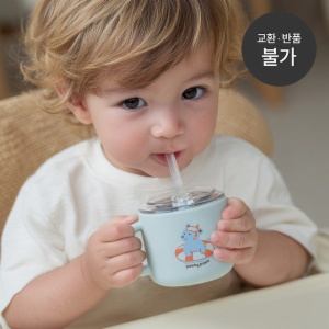 완전밀폐 실리콘 아기 빨대컵 [스위밍테디블루]