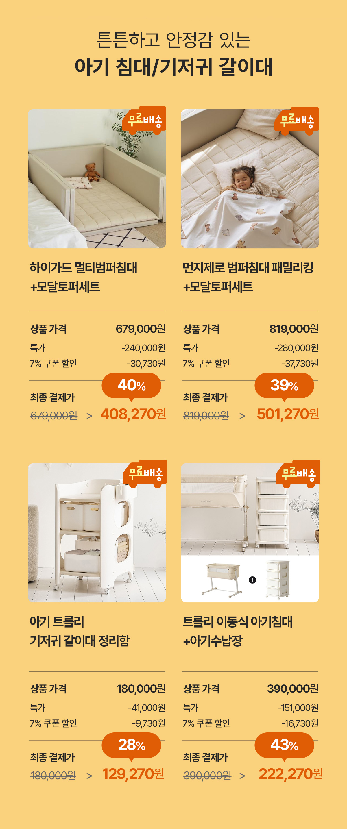 [🌟7%쿠폰]차원이 다른 압도적 수납력! 기갈대 짝꿍템! 아기침대+이동식 수납함