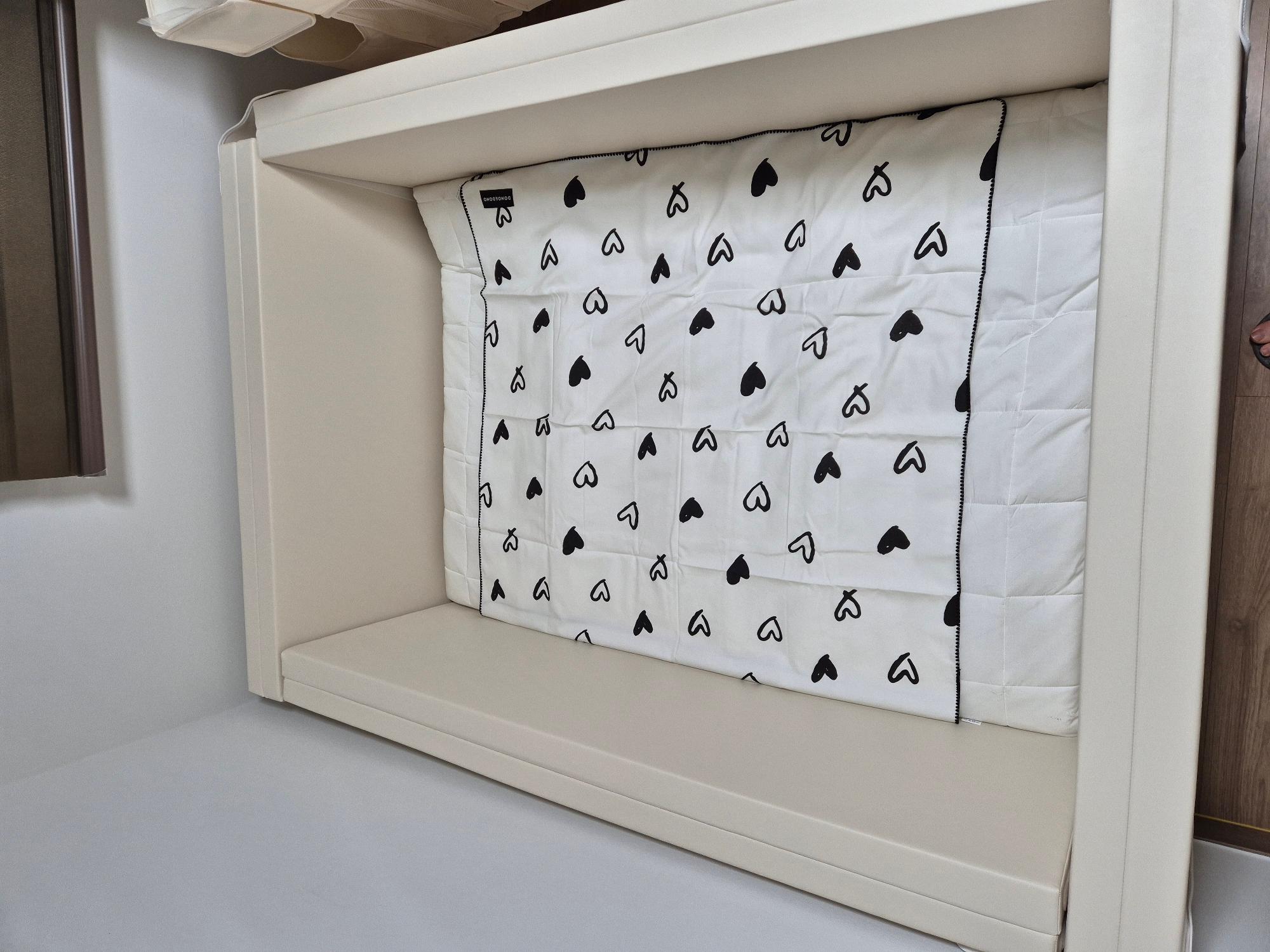 아이의 안전을 위해서 도노도노 범퍼침대를 먼저 사게 되었습니다. 그리고 그 사이즈에 맞게 깔아줄 토퍼를 찾다가 같은 브랜드 제품을 구매하게 됐습니다. 실제 받아보니 두께도 도톰하고 적당히 단단하고 푹신감이 있었습니다. 생각보다 편안해서 아이 보살필때 어른이 같이 누워있기도 편할것 같다는 생각이 들었습니다. 색상도 생각했던 흰색이라 집안 인테리어를 해치지 않고 조화롭게 맞습니다. 고민 오래한 끝에 구매했는데 태어날 아기를 위해 좋은제품으로 잘 샀다는 생각이 듭니다.