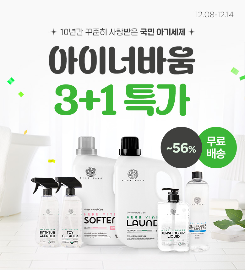 패밀리 유아 아기 신생아세탁세제 BIG세트(세탁세제4개+섬유유연제1개)