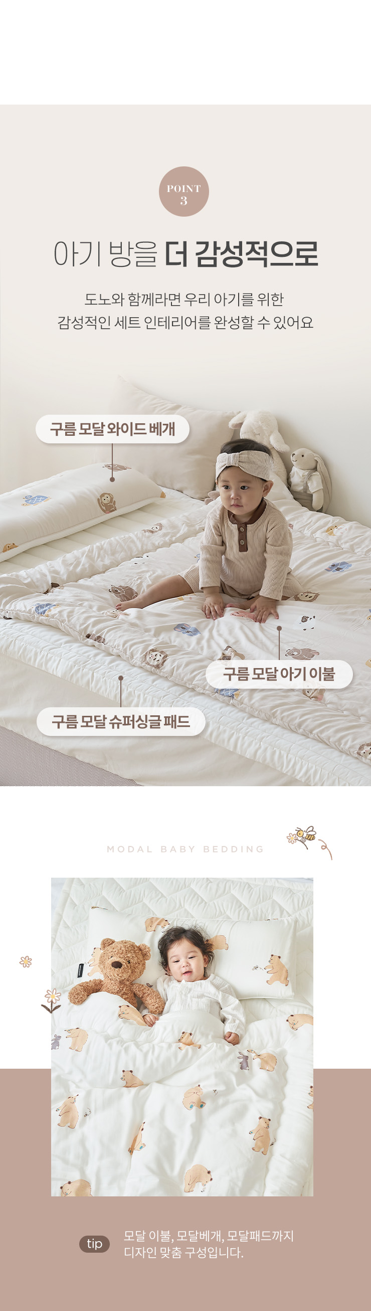 구름 모달&듀라론 양면 아기 와이드 베개 커버