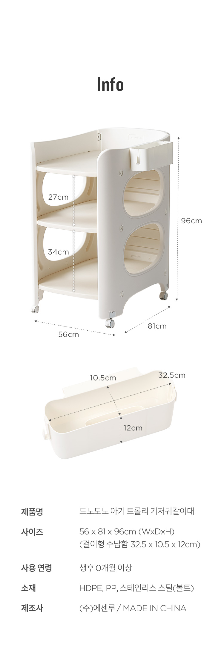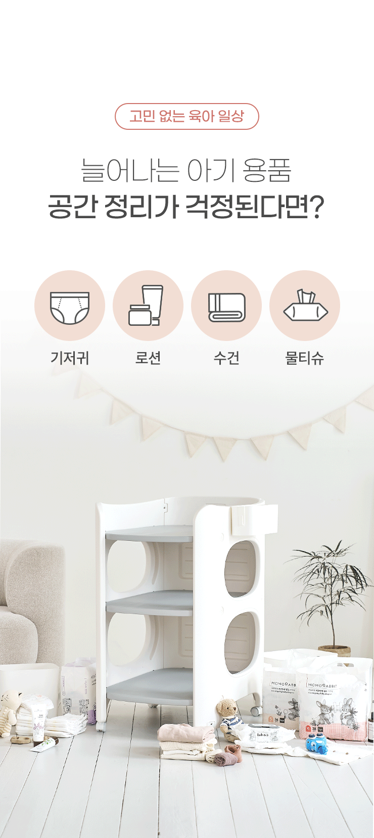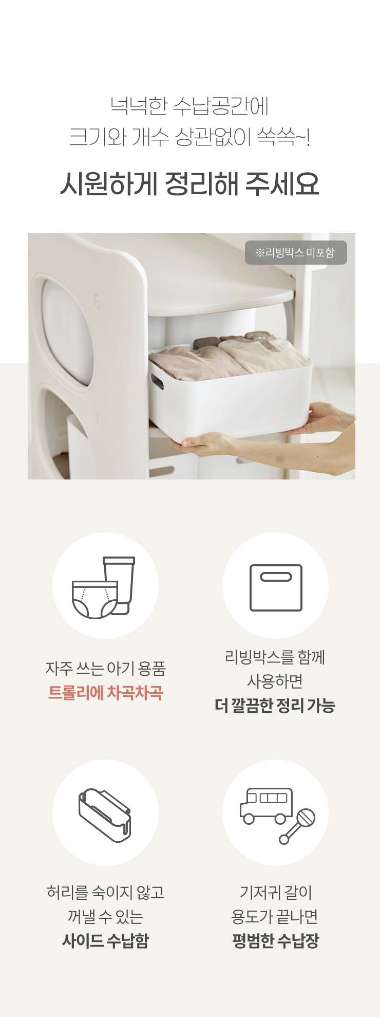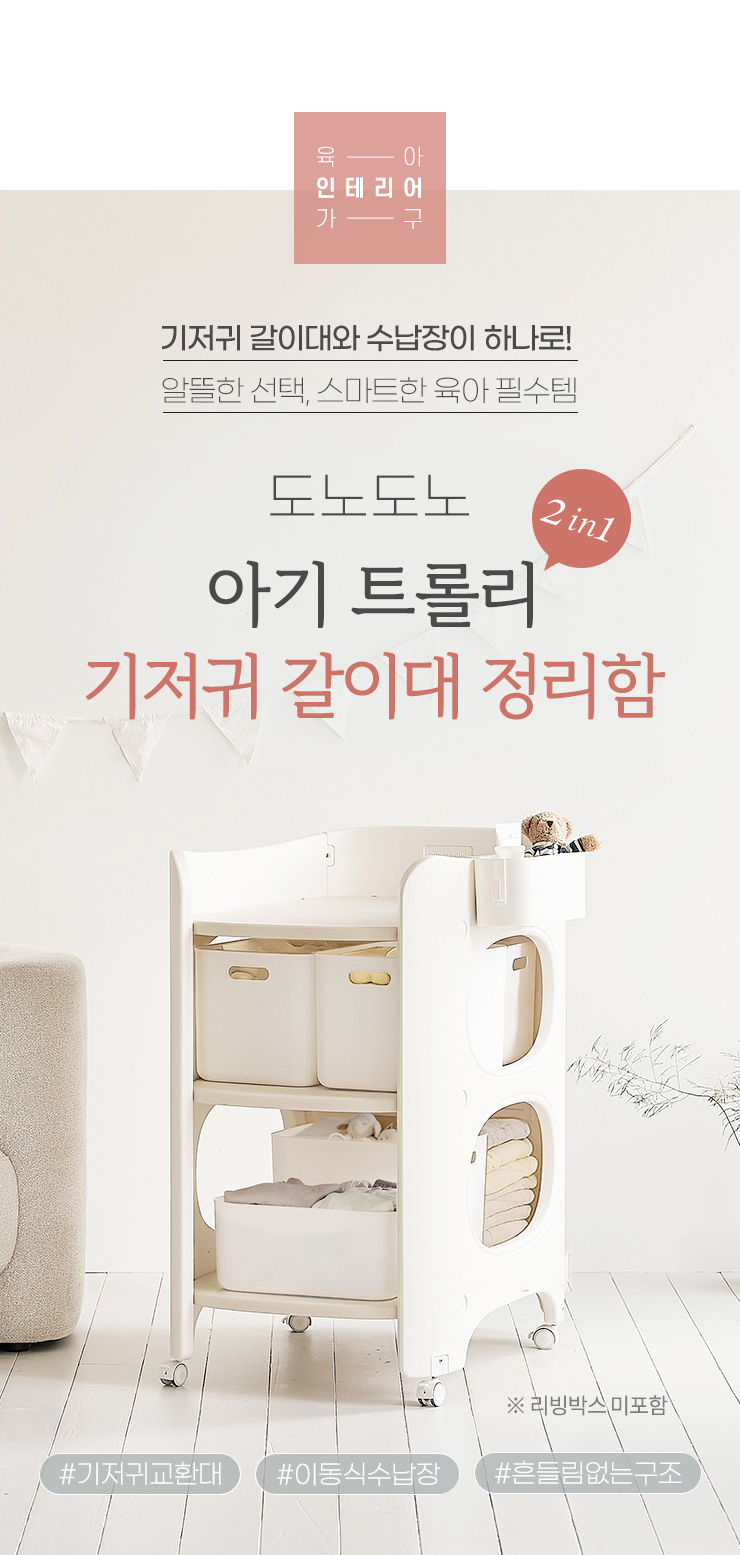4세대 아기 트롤리 기저귀 갈이대 정리함