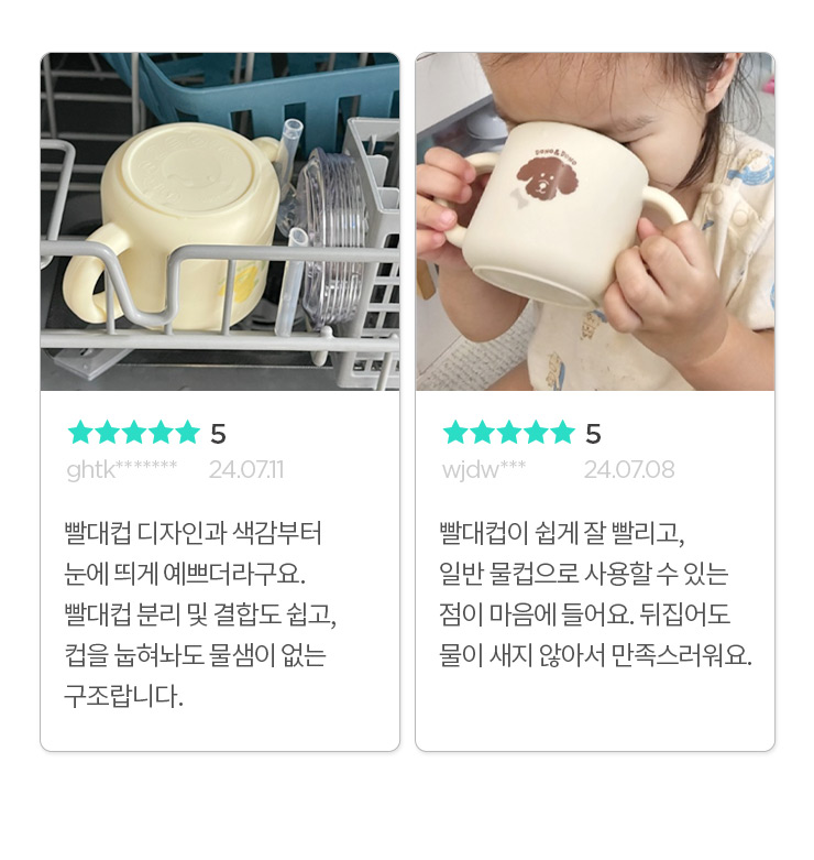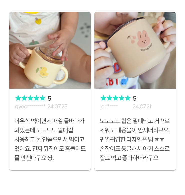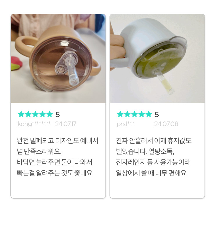실리콘 완전밀폐 빨대컵+자기주도 아기물컵