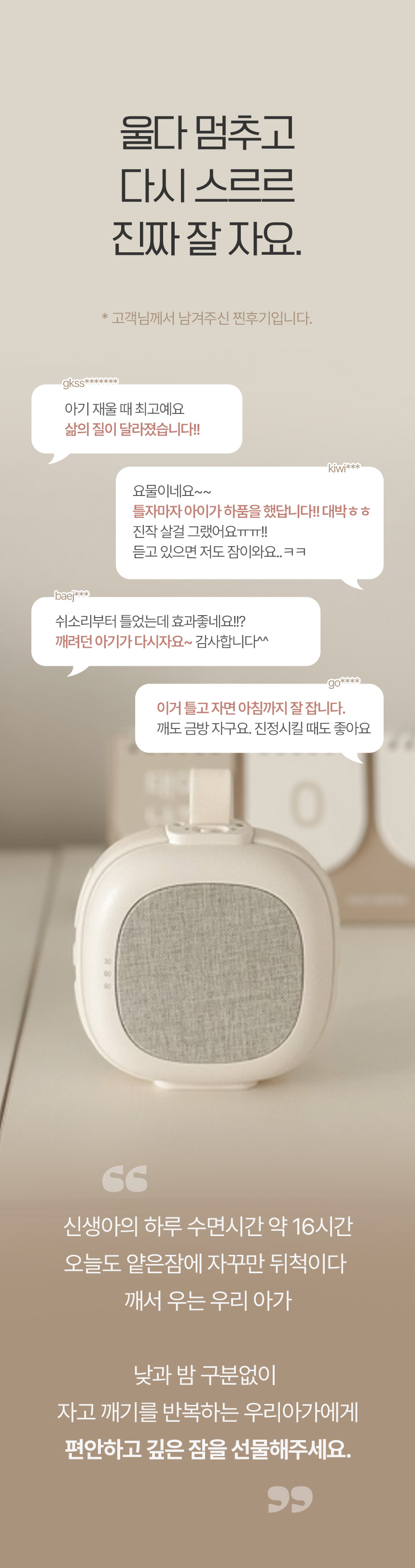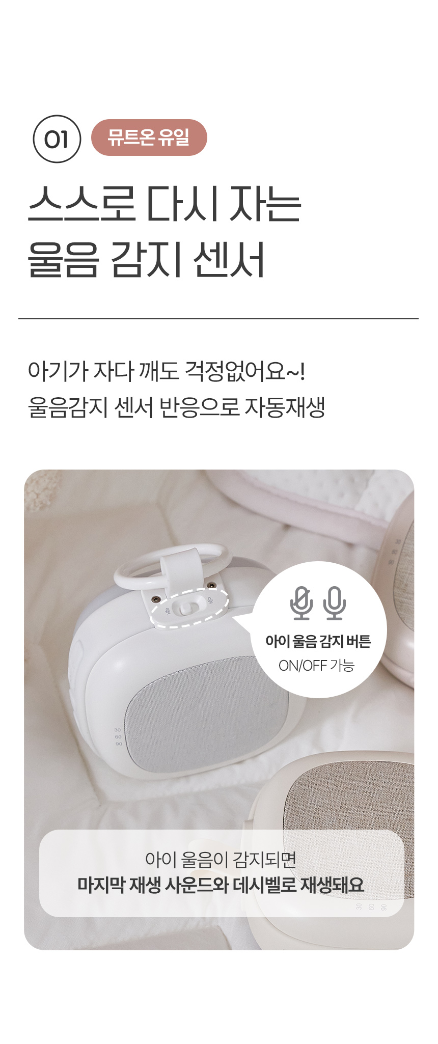 울음감지센서 아기 백색소음기 수면교육 수유등