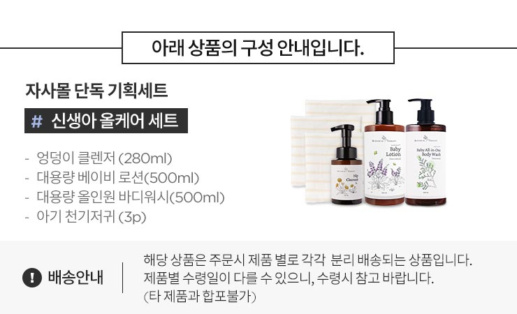 (엉덩이 클렌저+올인원 바디워시+베이비 로션+천기저귀 3P)