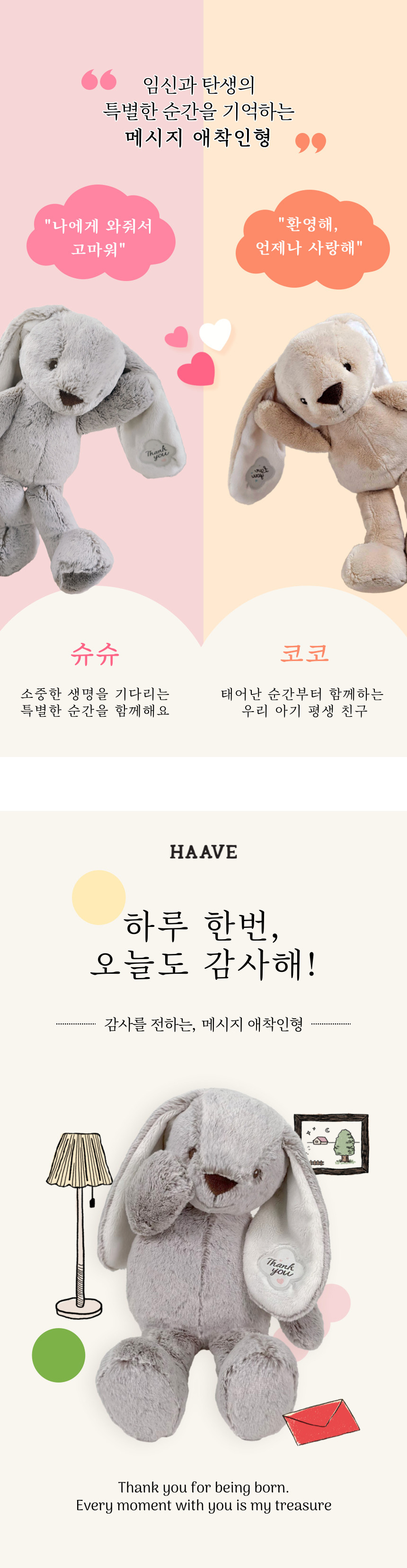 하베 아기 신생아 애착인형 토끼 버니 선물패키지 포함