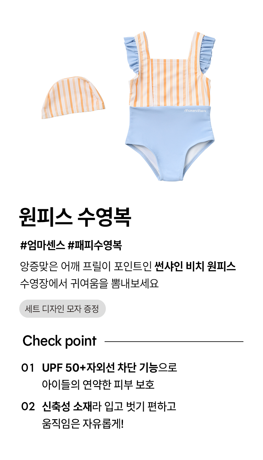 유아 아기 여아 원피스 수영복 + 수영모세트