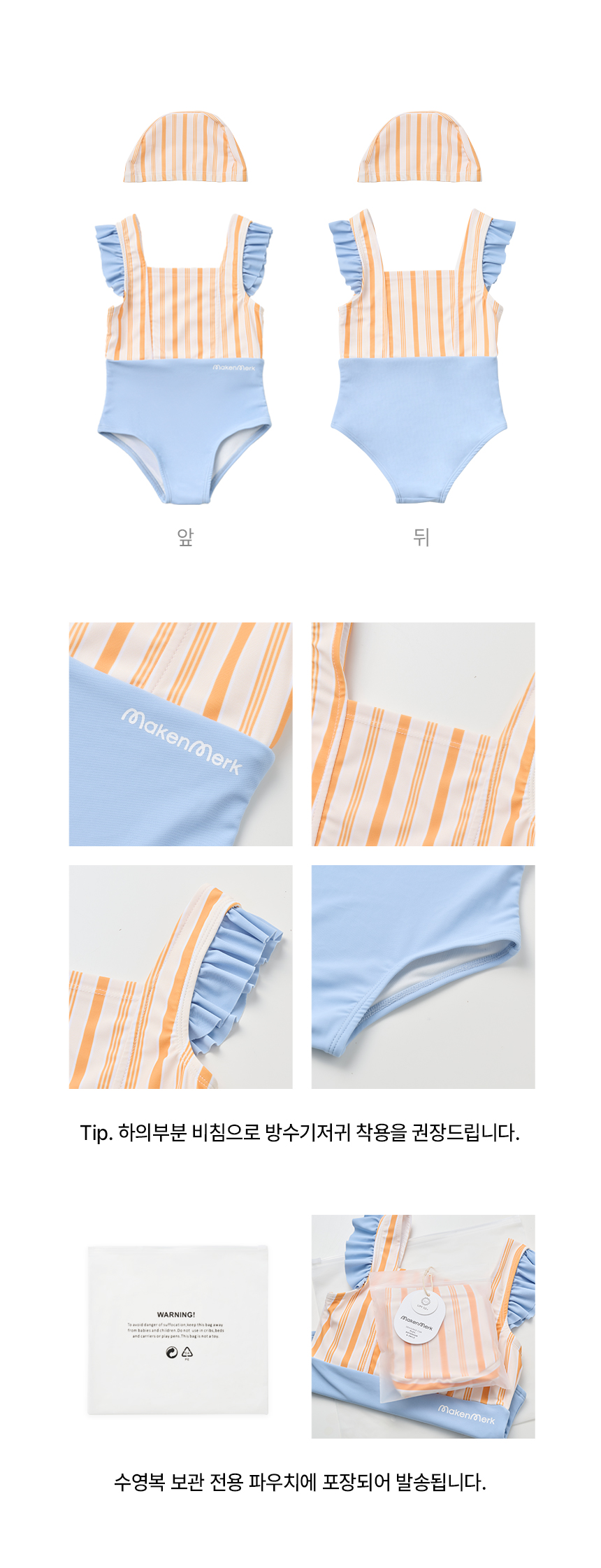 여아 원피스 수영복+수영모+힙쉴드 구명조끼세트