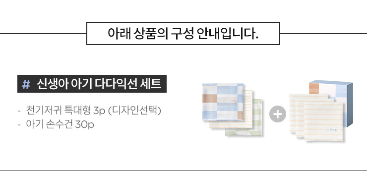 신생아 아기 다다익선 세트(천기저귀3p+손수건30p)
