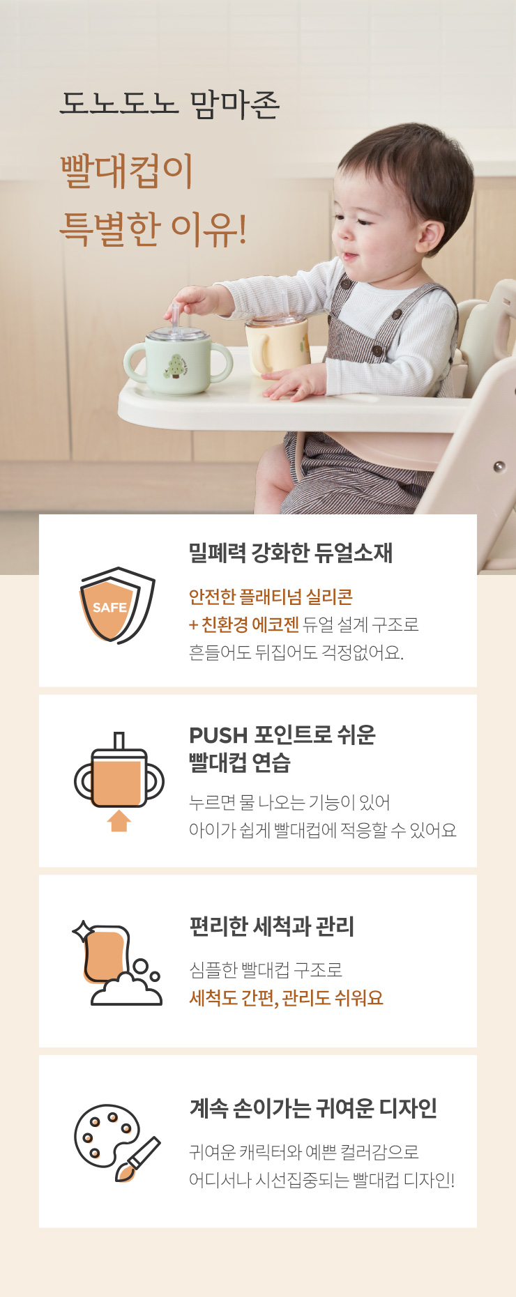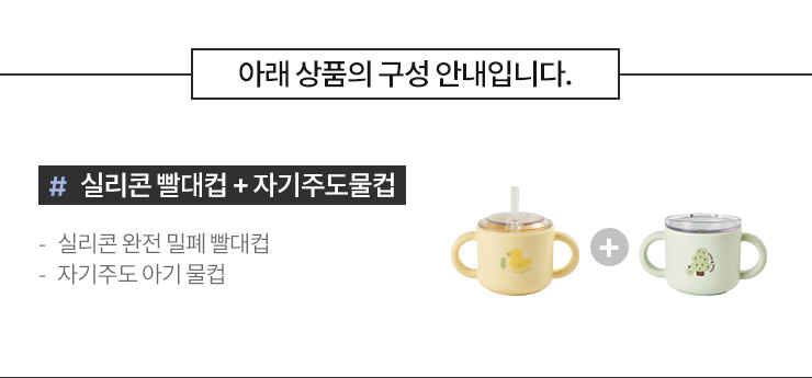 실리콘 완전밀폐 빨대컵+자기주도 아기물컵