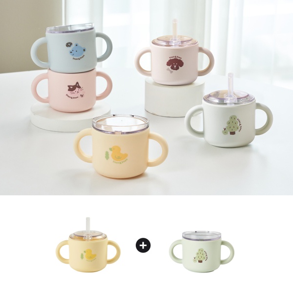 완전밀폐 실리콘 아기 빨대컵 1+1