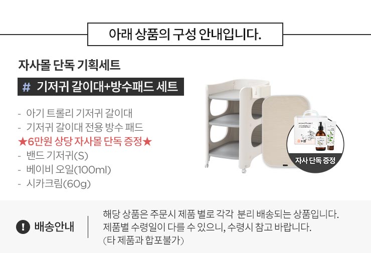[자사단독] [자사몰 한정 GIFT] 4세대 아기 트롤리 기저귀 갈이대 + 방수패드 세트
