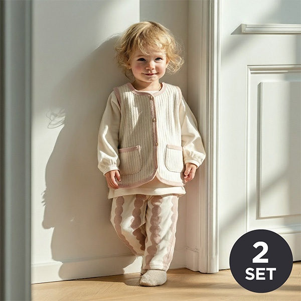 유아 아기 삼중지 누빔 반조끼 2개세트