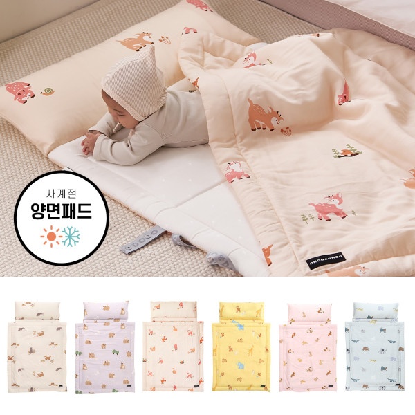 | Key Functional Features (기능정 특징) | 1. 사계절 양면 구조: 앞면은 인견, 뒷면은 모달 소재로 제작되어 사계절 사용이 가능합니다. 2. 더블메쉬 패드 구조 적용: 탄탄한 더블메쉬 패드와 패드용 솜의 결합으로 세탁과 건조기 사용 후에도 형태 유지력이 우수합니다. 3. 세탁·건조기 사용 가능 설계: 반복 세탁과 건조기 사용이 가능한 구조로 일상 관리가 편리합니다. 4. 피부 자극을 줄인 원단 사용: 모달과 인견 소재 특유의 부드럽고 시원한 촉감으로 아이 피부에 부담을 줄였습니다. 5. 베개 솜 높이 조절 가능: 아이 체형에 맞춰 베개 높이를 조절할 수 있습니다. 6. 어린이집·가정 겸용 구성: 사계절 사용 가능한 이불과 적당한 두께의 패드로 어린이집과 가정 모두에서 활용하기 좋습니다. |
